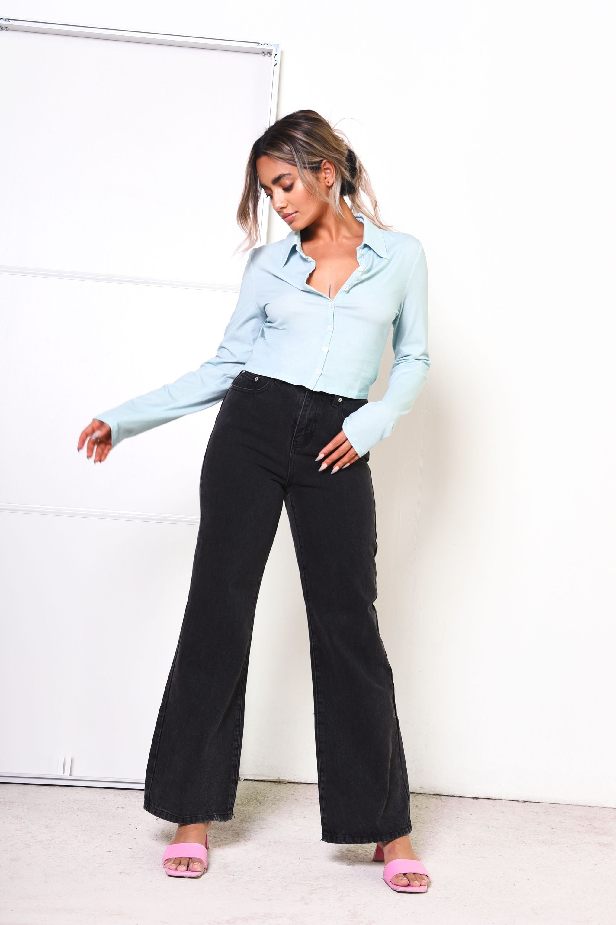 Glamorous Navy Button Front Crop Top