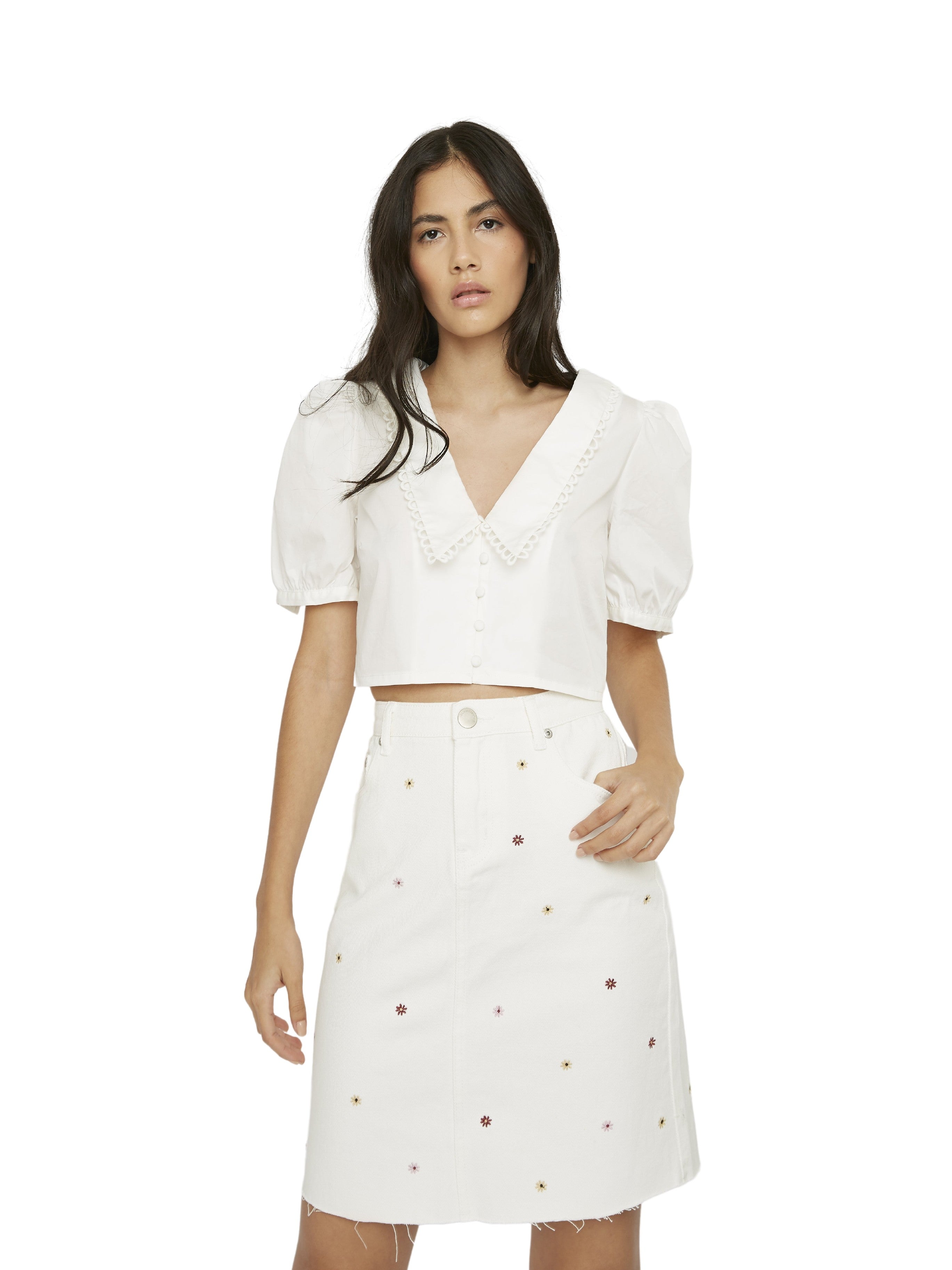 White Crochet Collar Cropped Blouse