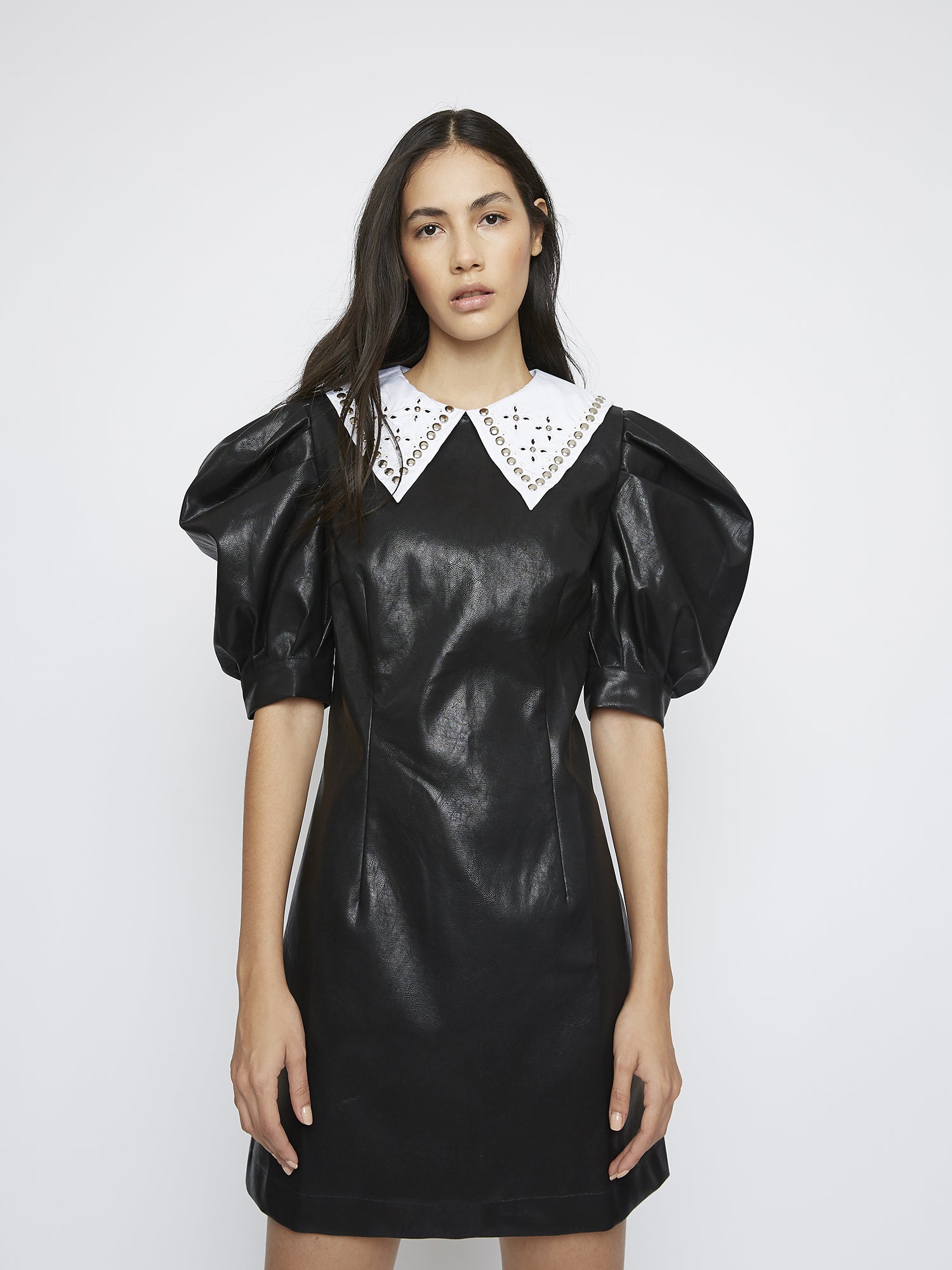 Glamorous Black PU Statement Collar Puff Sleeve Dress