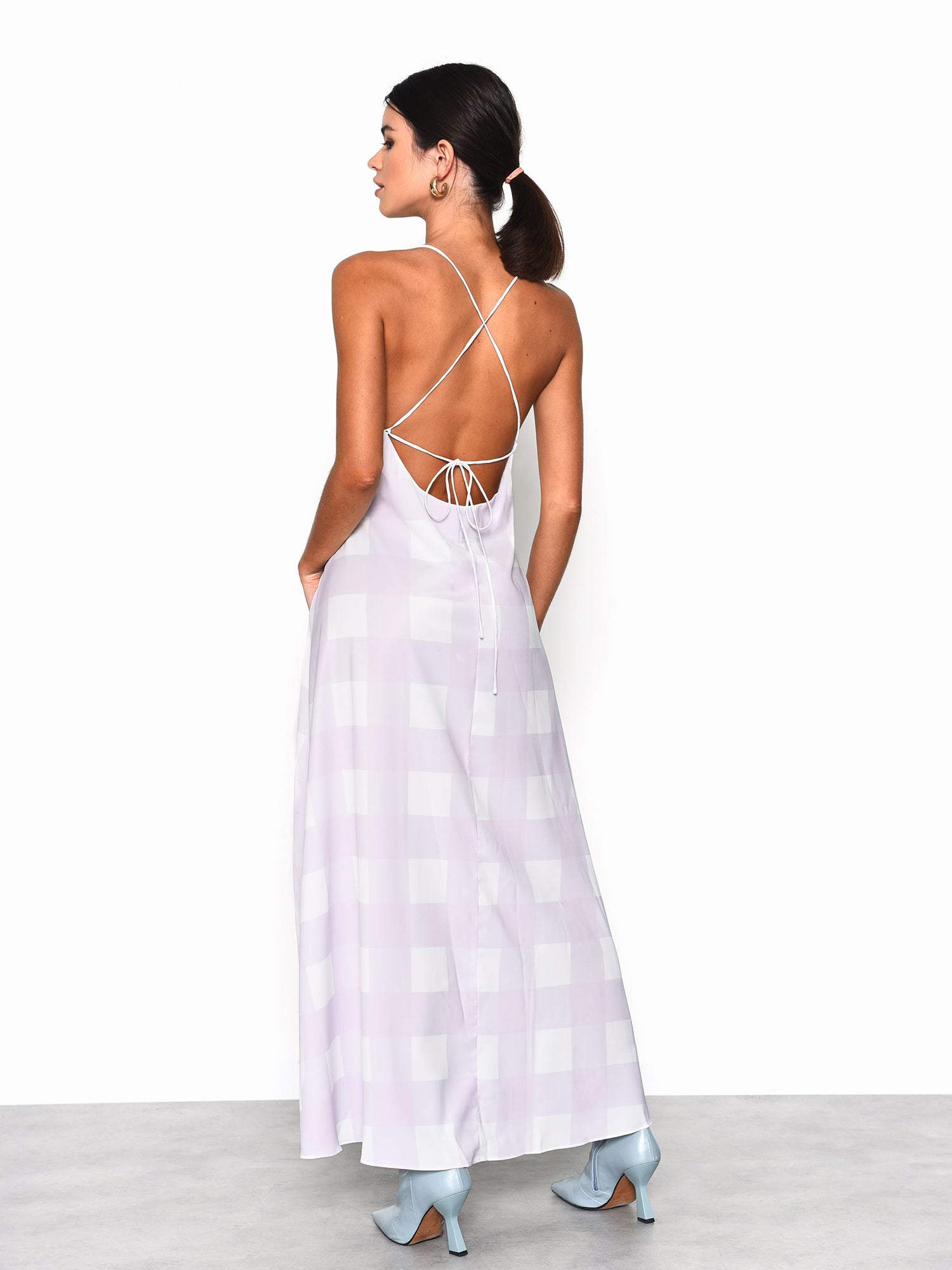 Glamorous Lilac Checkerboard Print Midi Dress