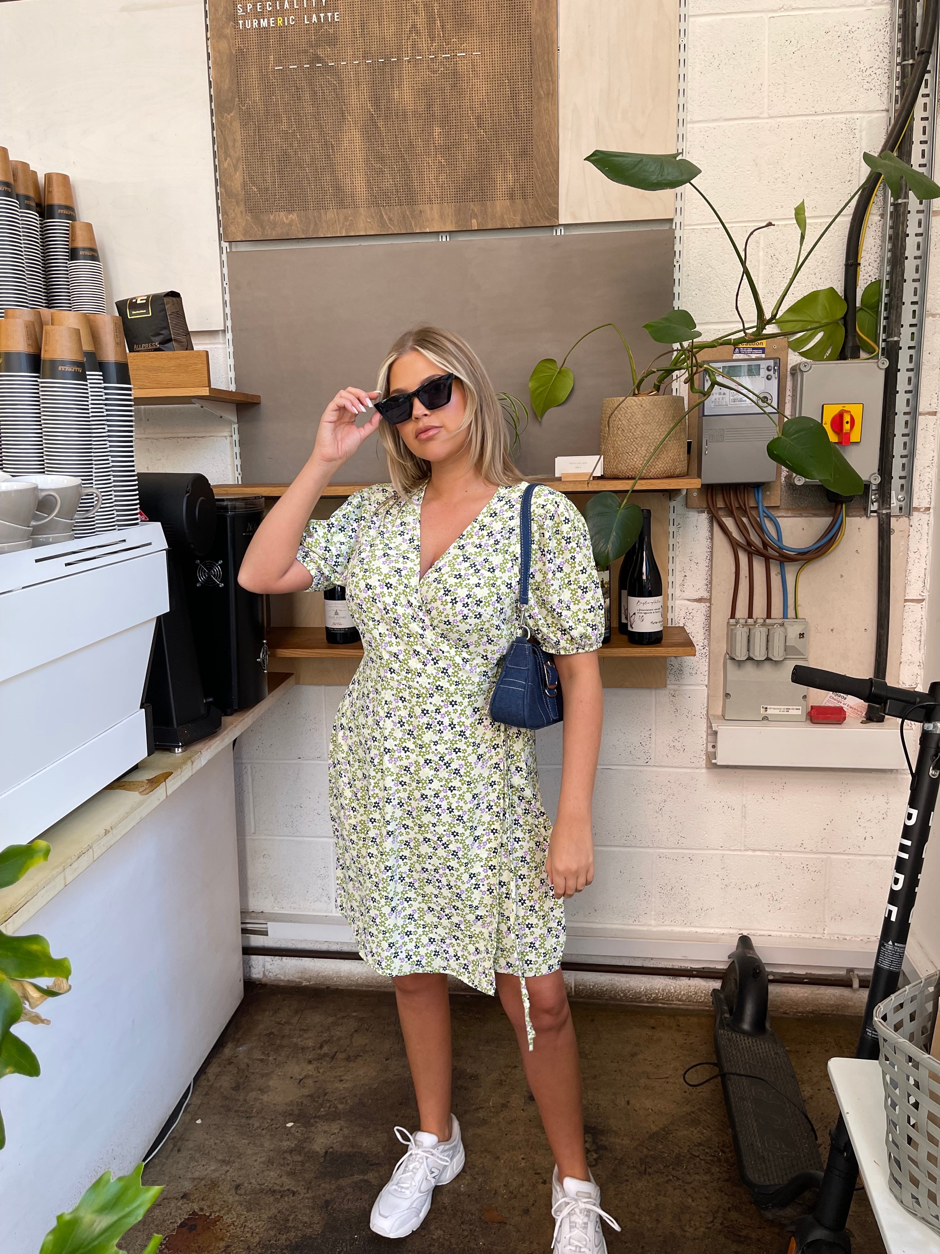 Retro Daisy Wrap Short-Sleeve Mini-Dress