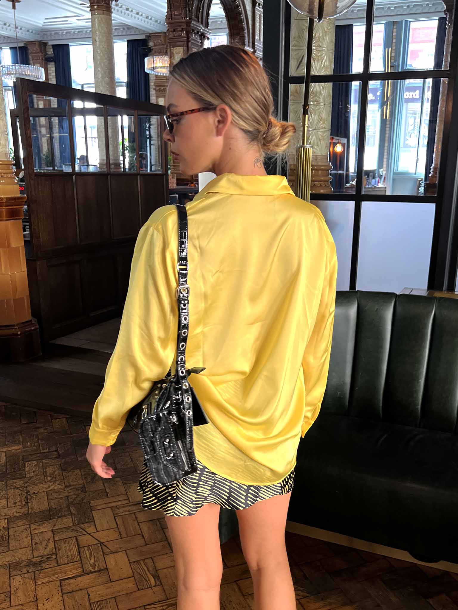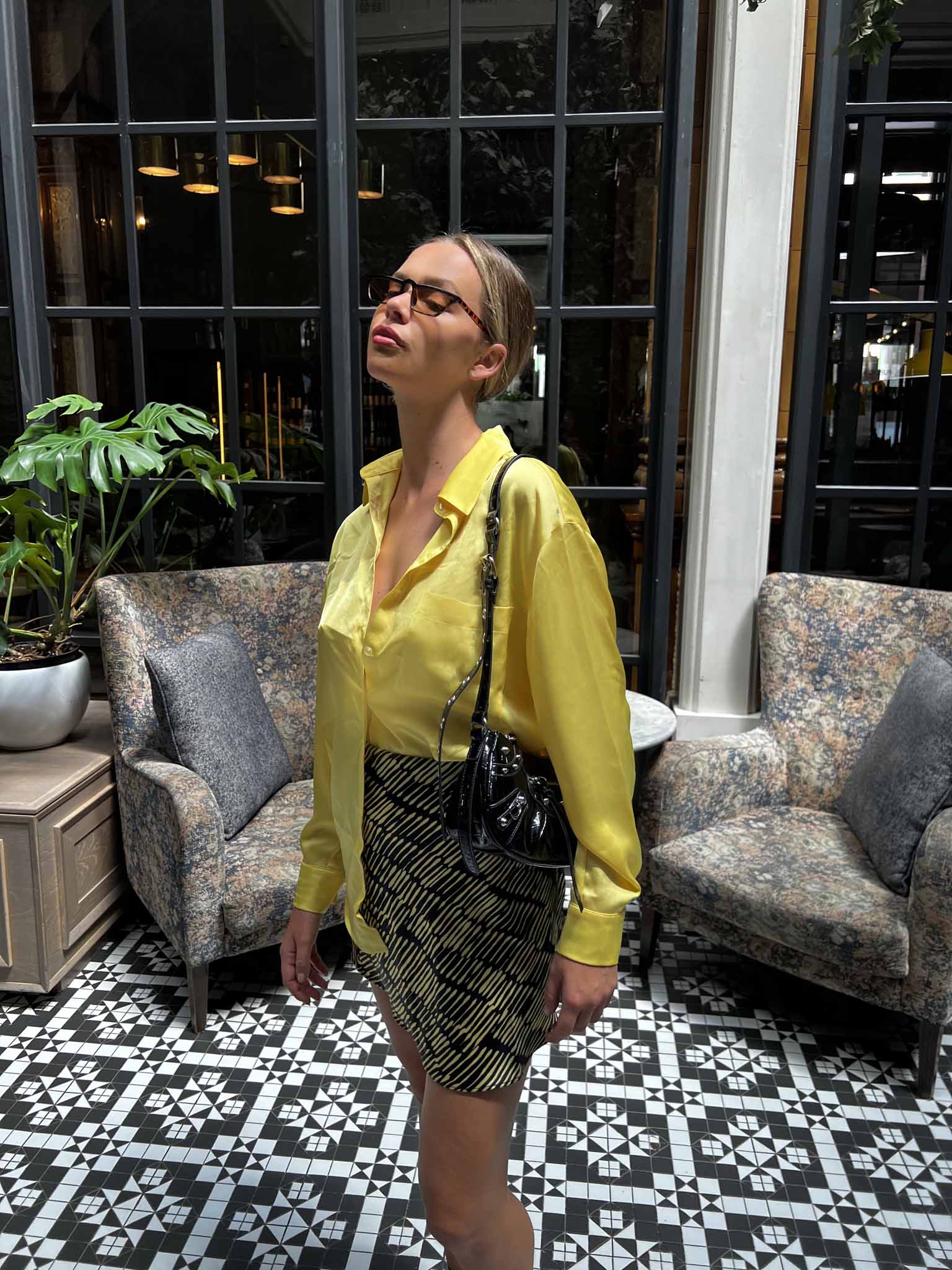 Glamorous Yellow Sketch Stripe Bias Cut Mini Skirt