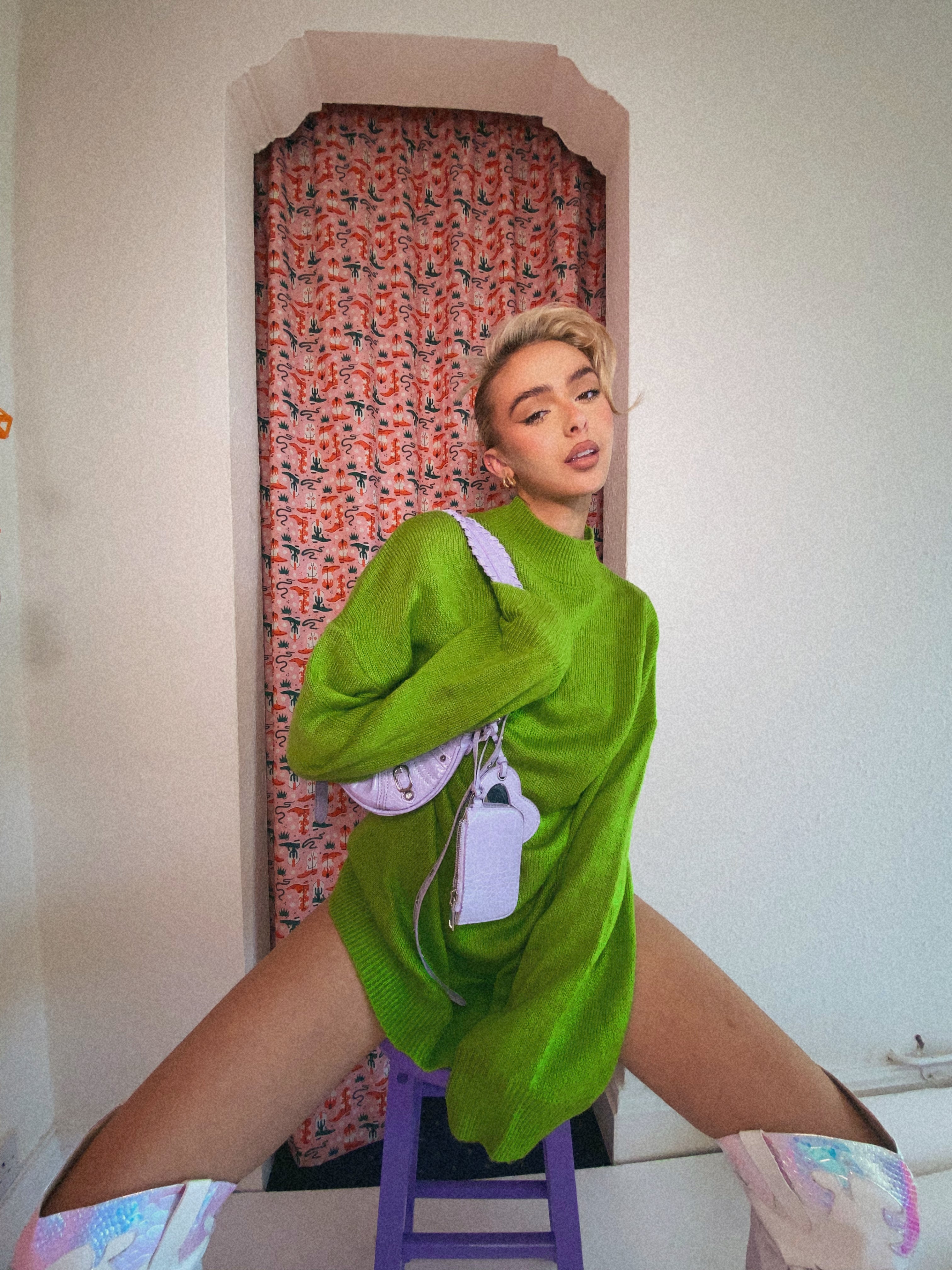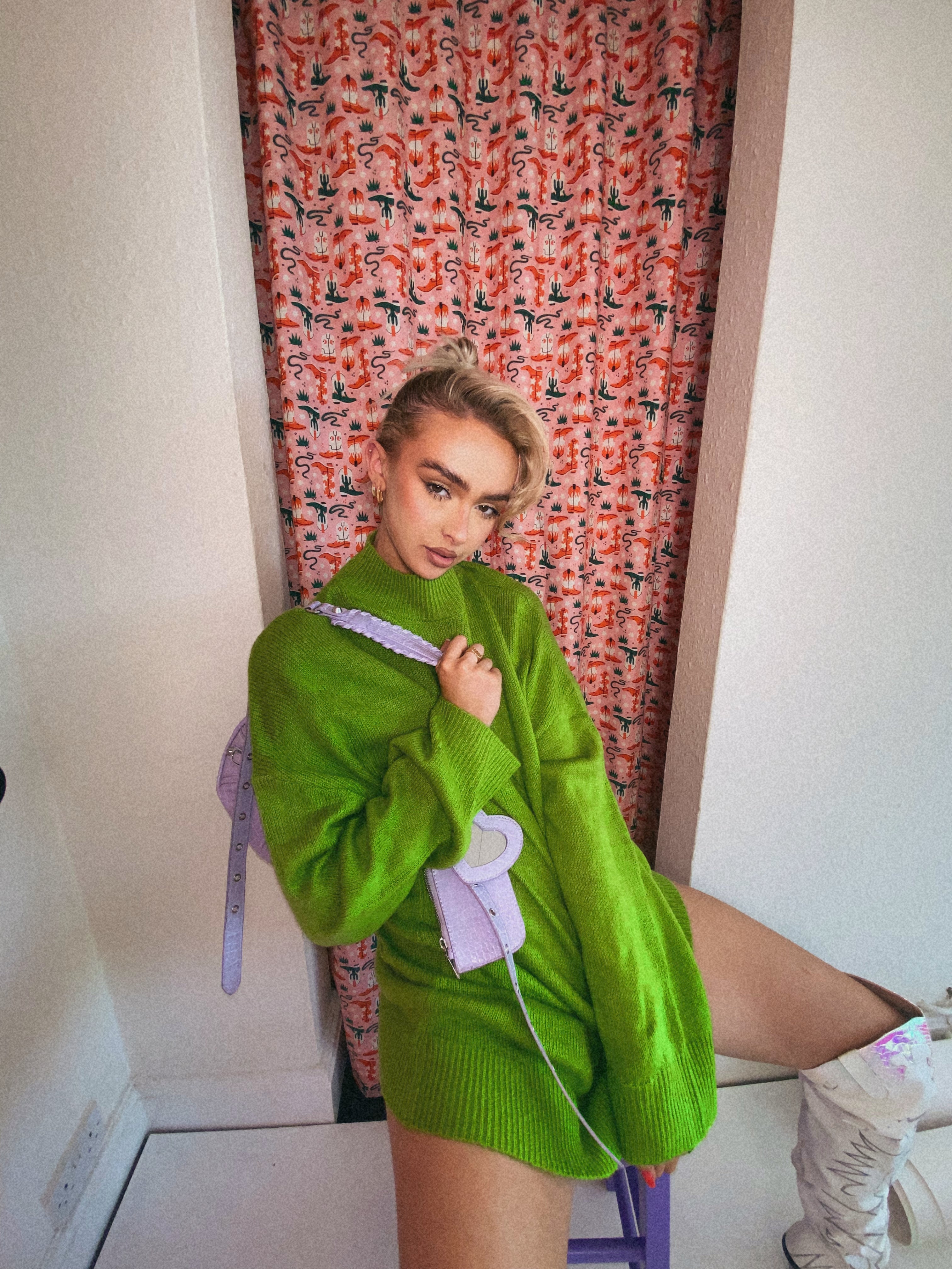 Glamorous Bright Green Knitted Mini Jumper Dress