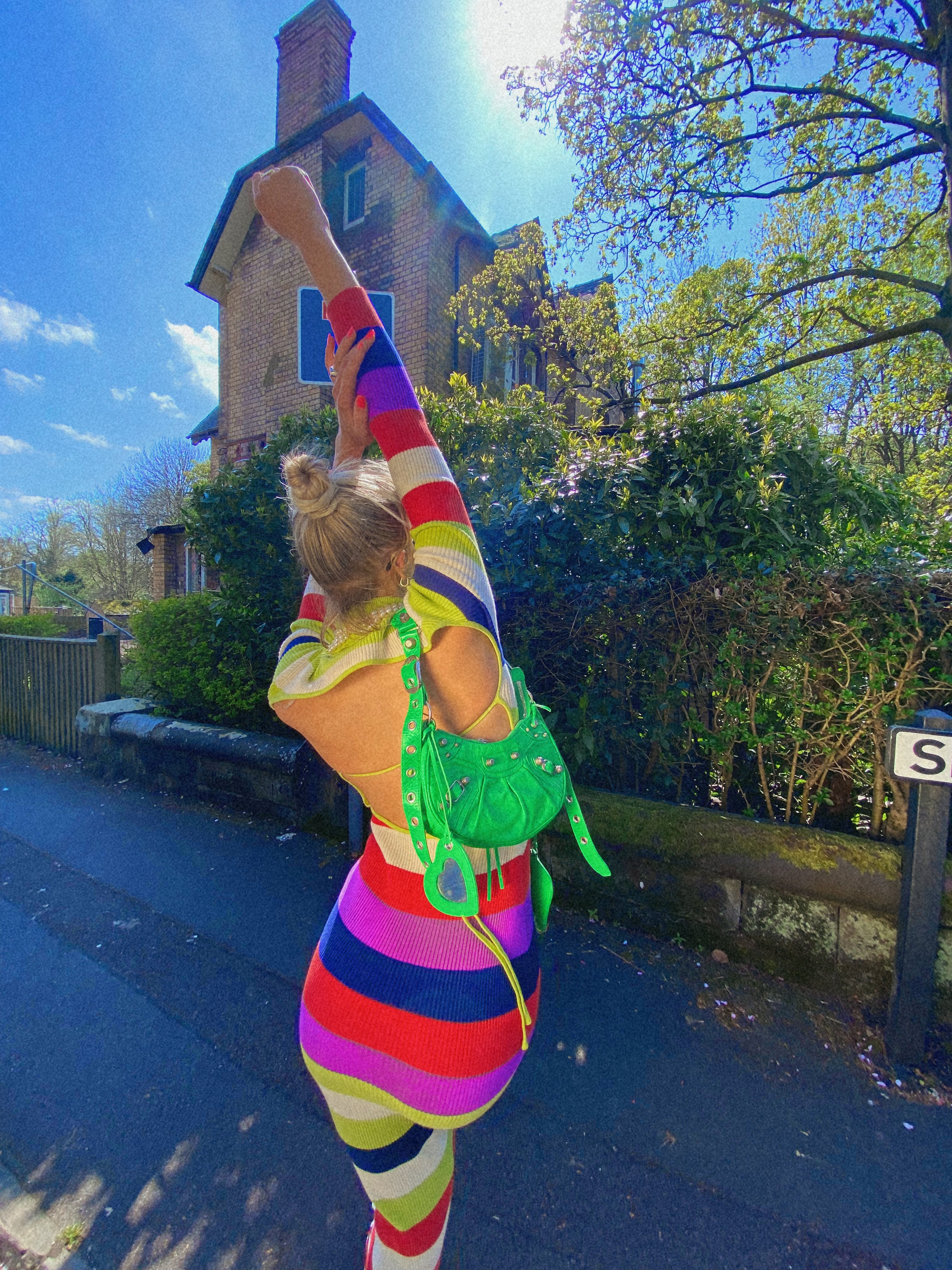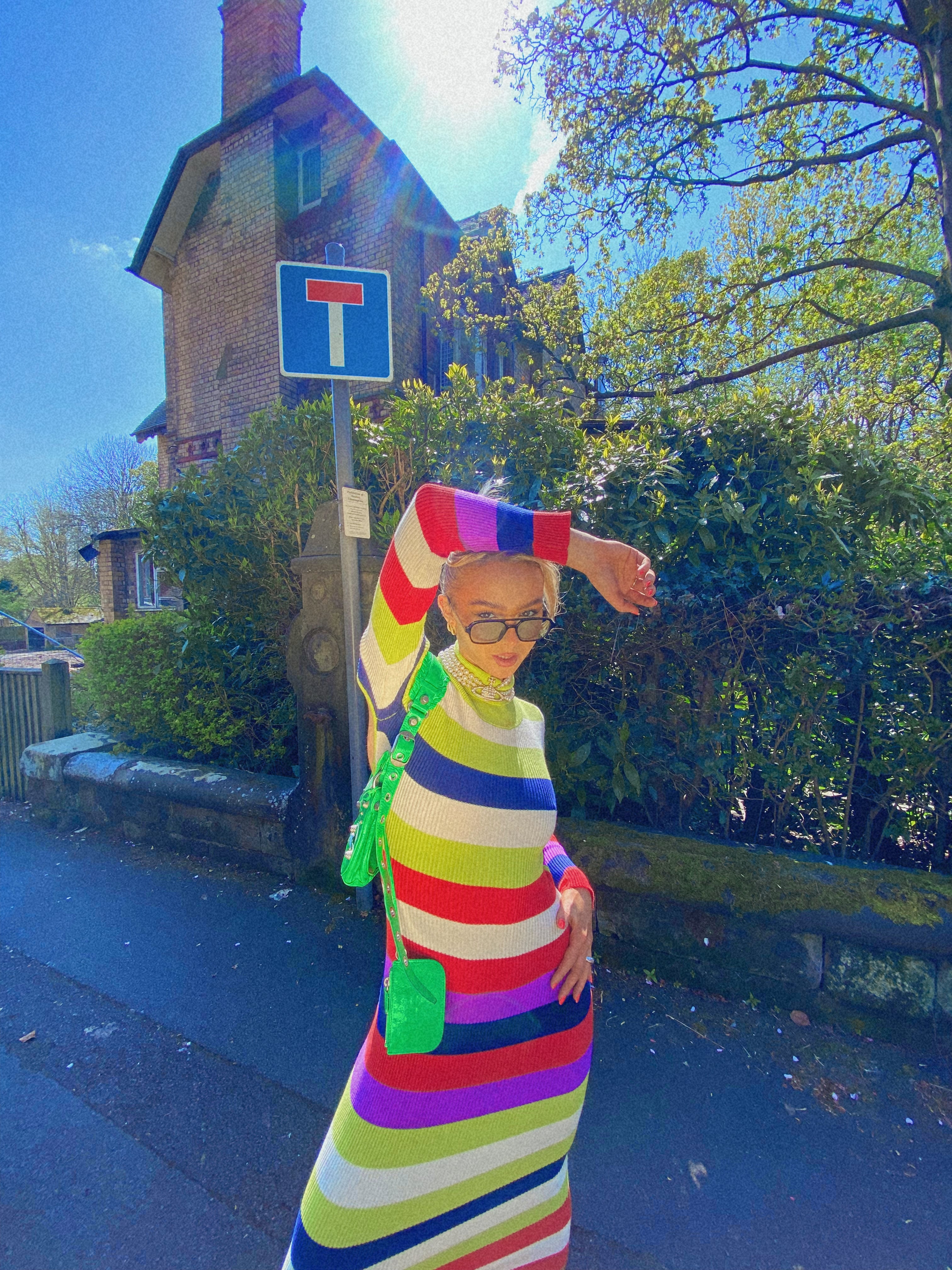 Glamorous Multi Stripe Knitted Midi Dress with Open Back