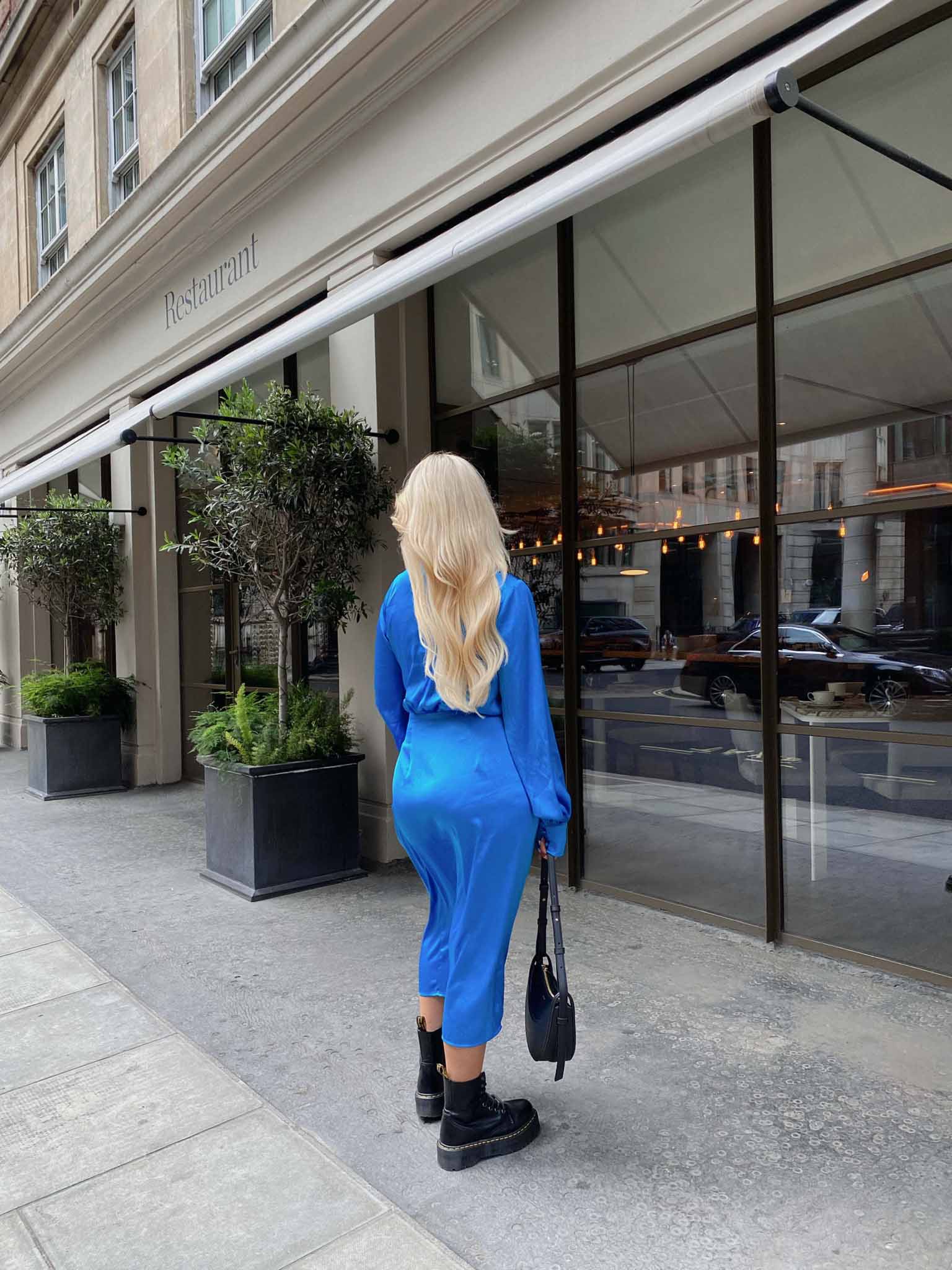 Glamorous Blue Aster Satin Long Sleeve Wrap Dress