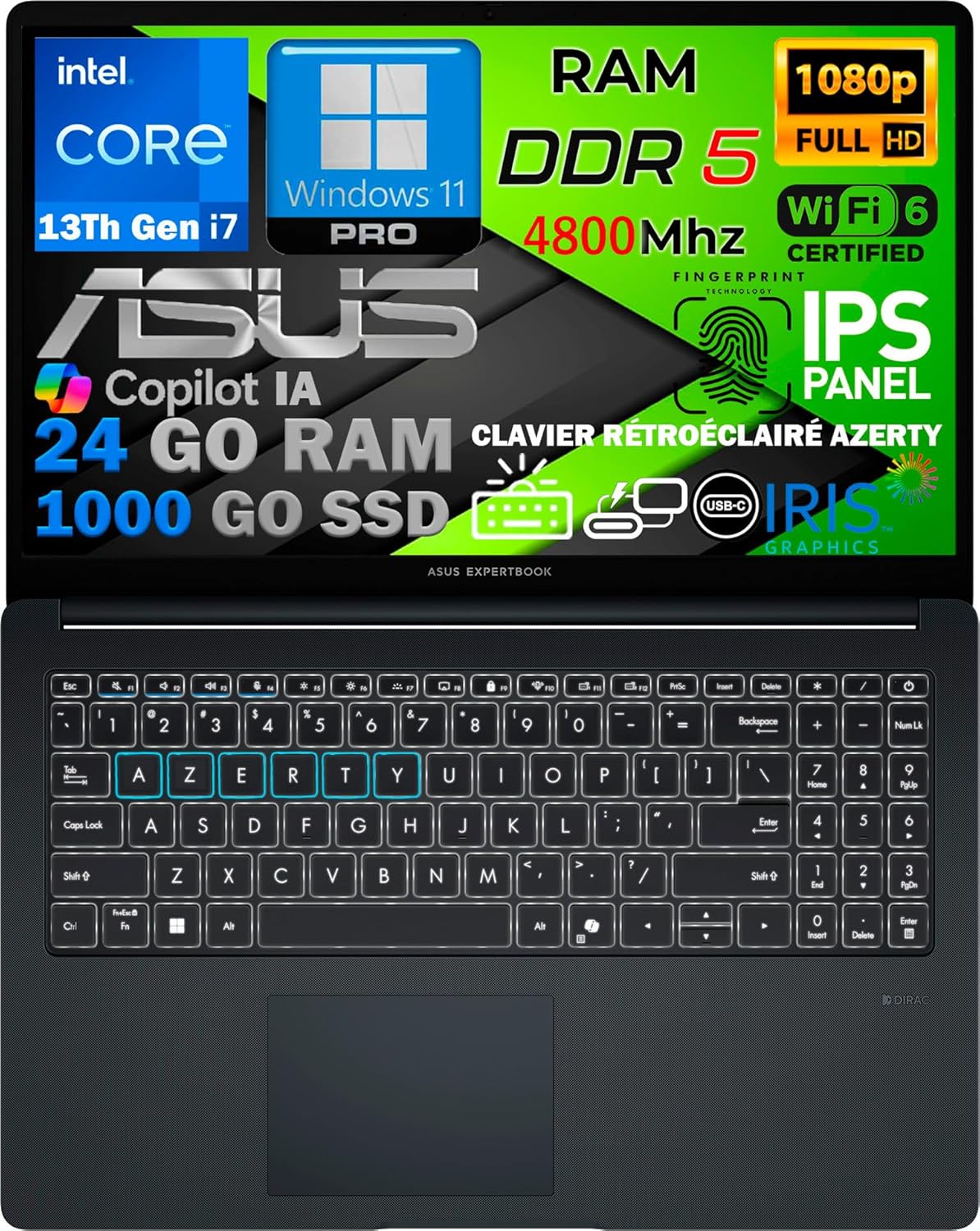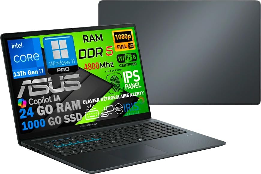 ✔️ Performances professionnelles puissantes: Ordinateur portable avec processeur Intel Core i7-1355U (10 cœurs, jusqu’à 5 GHz en mode Burst), 24 Go de RAM DDR5 à 4800 MHz et SSD PCIe NVMe de 1 To vitesse et fluidité idéales pour toutes vos tâches multitâches. ✔️ Affichage immersif et audio de qualité: Écran 15.6” Full HD IPS antireflet, carte graphique Intel Iris Xe, et technologie Dirac Audio pour un son immersif. Touche Copilot IA intégrée pour une expérience de travail encore plus innovante. ✔️ Connectivité de dernière génération: WiFi 6E ultra-rapide, Bluetooth 5.3, (USB-C avec DisplayPort), 4 ports USB, HDMI, webcam Full HD 1080p avec obturateur de confidentialité et microphone intégré. Un port Ethernet RJ45 Gigabit est disponible. ✔️ Confort et sécurité au quotidien: Clavier AZERTY rétroéclairé, lecteur d’empreinte digitale, design ultra-fin, autonomie de batterie jusqu’à 6 heures parfait pour travailler librement où que vous soyez avec votre ordinateur portable. ✔️ Prêt à l’emploi avec Windows 11 Pro: Système 64 bits installé avec Microsoft Defender, pilotes et mises à jour complètes, applications bureautiques essentielles préconfigurées. Chaque appareil est testé et reconditionné pour garantir une qualité optimale.
