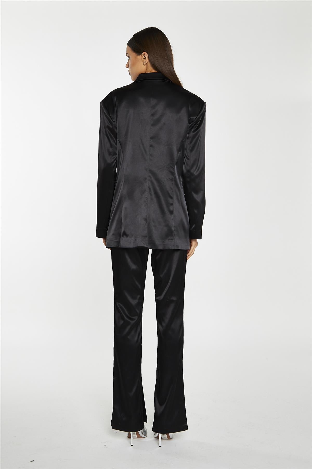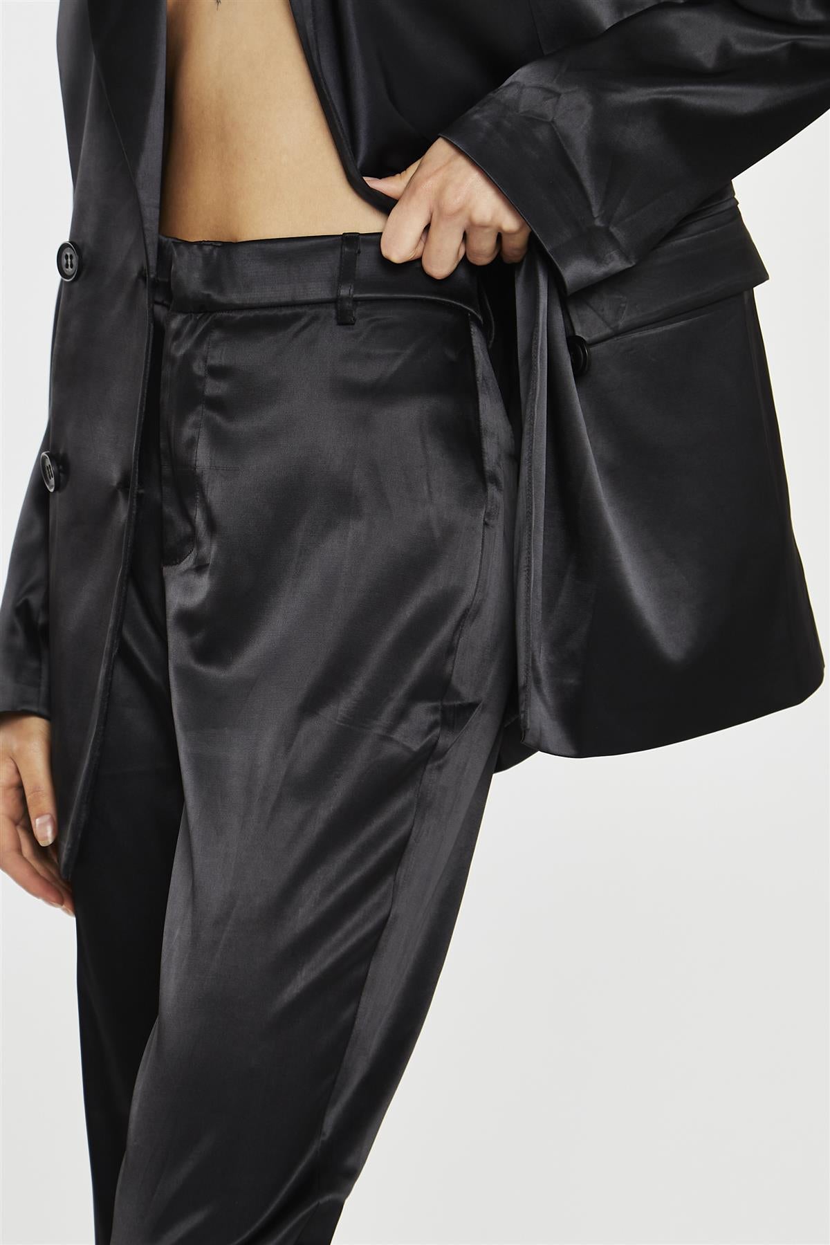 Glamorous Women's Black Satin High Waisted Wide Leg Trousers. Smooth sophistication flows effortlessly in these black satin high waisted wide leg trousers, offering a relaxed, leg-lengthening silhouette that supports your confidence with one easy pull-on while draping beautifully over any body shape. High waisted design sits comfortably at your natural waist, providing gentle tummy control and a flattering anchor that balances your proportions for an instant elongated look without restrictive digging. Wide leg sweeps dramatically from hip to hem, creating airy movement that feels freeing and non-constricting, perfect for striding through your day with poise or lounging in style. Satin finish glides softly against your skin with a subtle sheen that catches light gently, adding quiet luxury to simple tops while keeping everything breathable and low-maintenance. Style with a cropped cardigan, V-neck jumpsuit topper, or square neck mini to let the high waisted shape, wide leg flow, and satin texture quietly elevate your everyday vibe into something effortlessly chic.