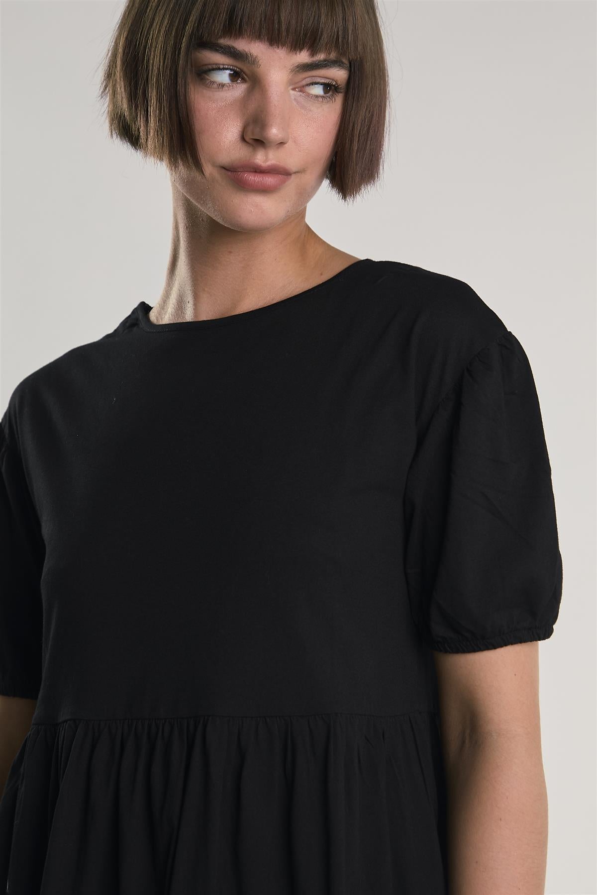 This Tiered Smock Midi Dress brings a breezy, easygoing vibe. The layered tiers create a relaxed shape that still looks refined, while short sleeves with gentle elastic keep it comfortable all day. Pair with ankle boots and a denim jacket for a simple but standout look.