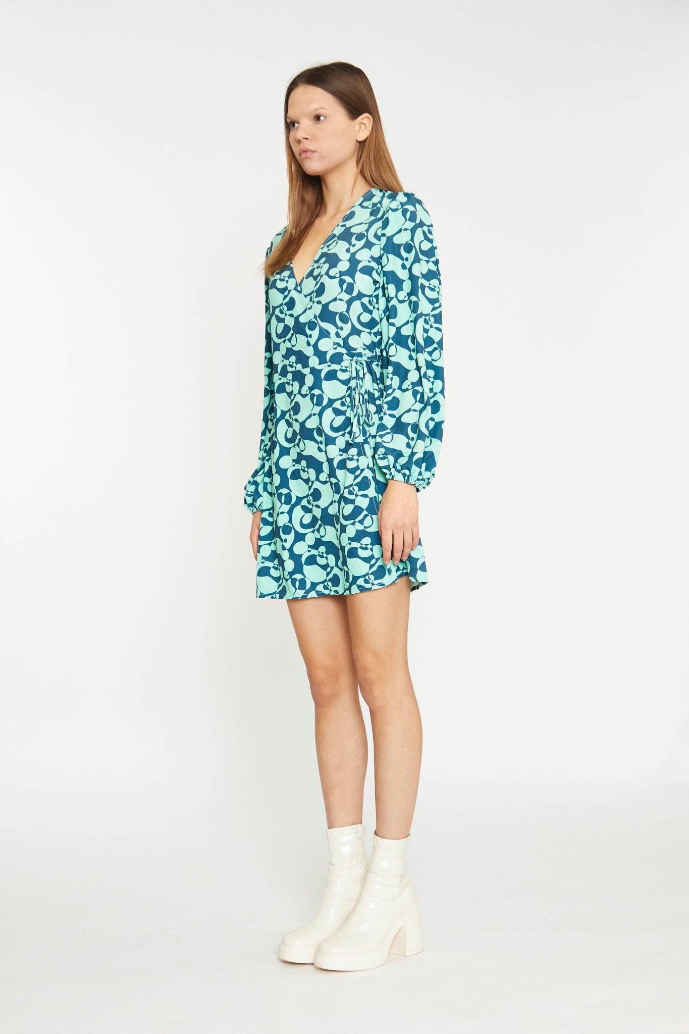 Glamorous Womens Green Abstract-Bubble V-Neck Wrap Mini Dress. This dress is a print lovers dream! Featuring a V-Neck fit and a wrap front, you wont regret adding this super fun flattering piece to your wardrobe. This style is a Glamorous favourite as it is super versatile and easy to wear, whatever the occasion.