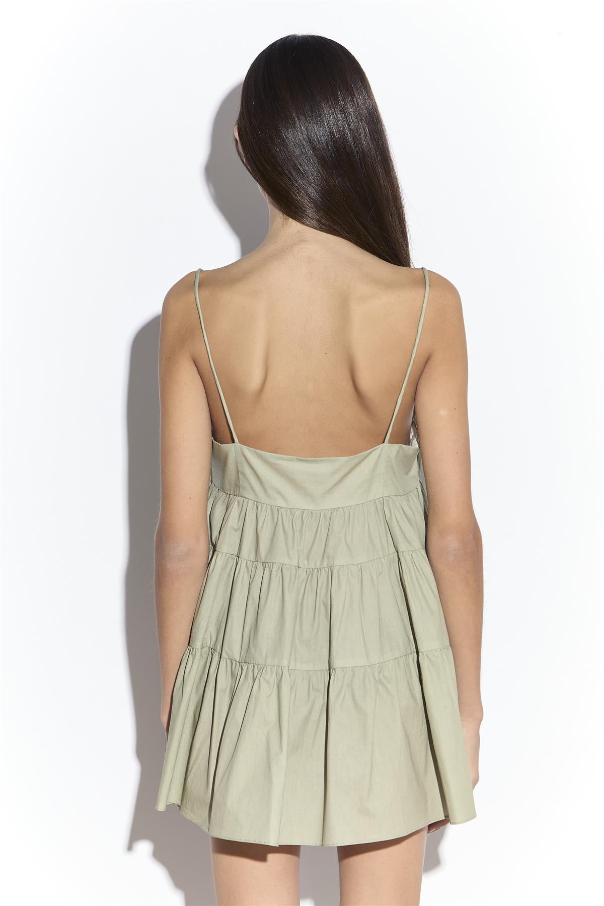 Narrated Women's Ligh Khaki Empire Line Mini Dress - Light Khaki. Effortless elegance meets playful movement in this empire line mini dress, designed to make you feel confident and free all day long. The V-neck creates a flattering frame for the neckline, while sleeveless styling with delicate rouleau straps adds a touch of refined detail. A full, tiered skirt with gathers brings soft volume and natural flow, giving every step a sense of graceful ease. Designed to combine comfort with style, this dress moves beautifully and highlights your silhouette without restriction. Style with simple sandals or minimal accessories for a polished, effortlessly chic finish.