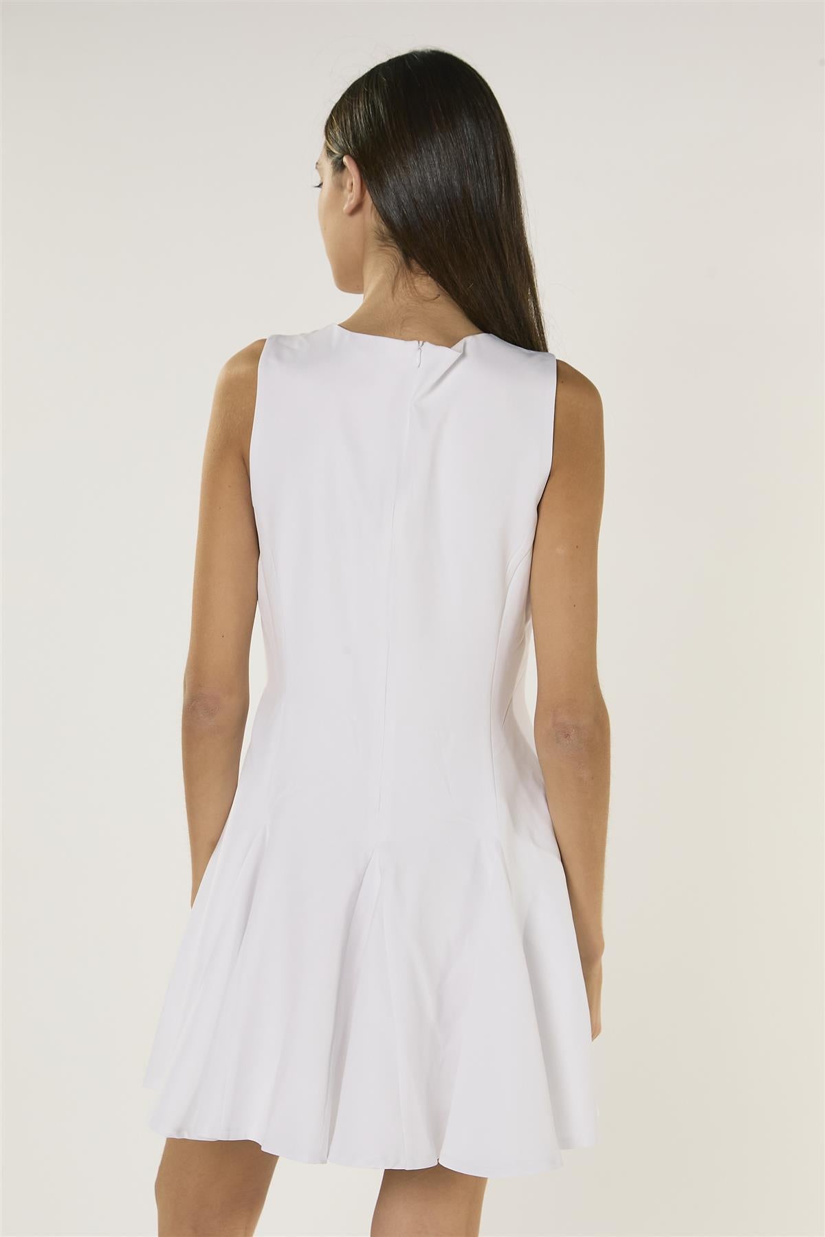 Glamorous Women's White Tie Front Dress - White. Effortlessly playful and effortlessly chic, this white tie-front mini dress brings a touch of modern elegance to your wardrobe while keeping comfort in mind. Designed sleeveless for easy movement, it features a flattering round neckline and a playful godet skirt that adds gentle volume and flow with every step. Mini length gives a youthful, confident vibe, making it perfect for casual gatherings or stylish day-to-night transitions. Pair with simple sandals or sleek sneakers for a relaxed look, or dress it up with minimalist heels and delicate accessories to let the tie-front detail shine.